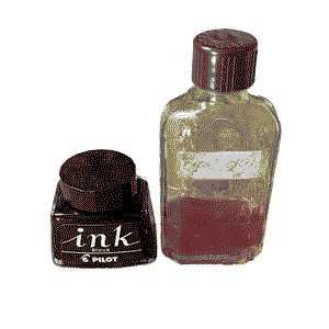 普通のインクとコーパルワニス(フィキサチーフ用)